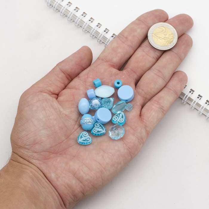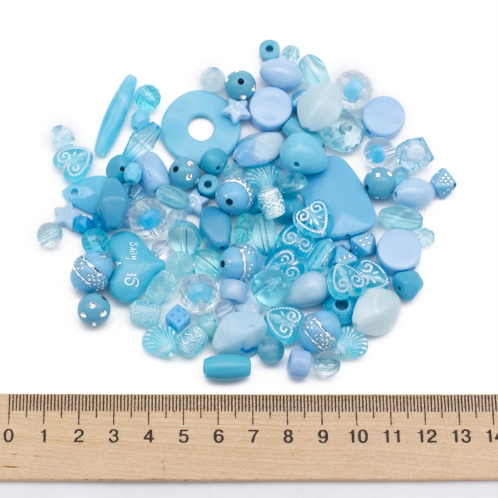 Намистини Акрил "Бомбей" Змішані Форми, Колір: Блакитний, Розмір: 5.5-28x6-20x3-11мм, Отвір 1-5мм, близько92шт/50г, (УТ100014228)