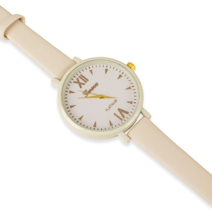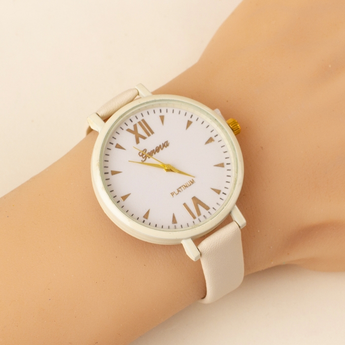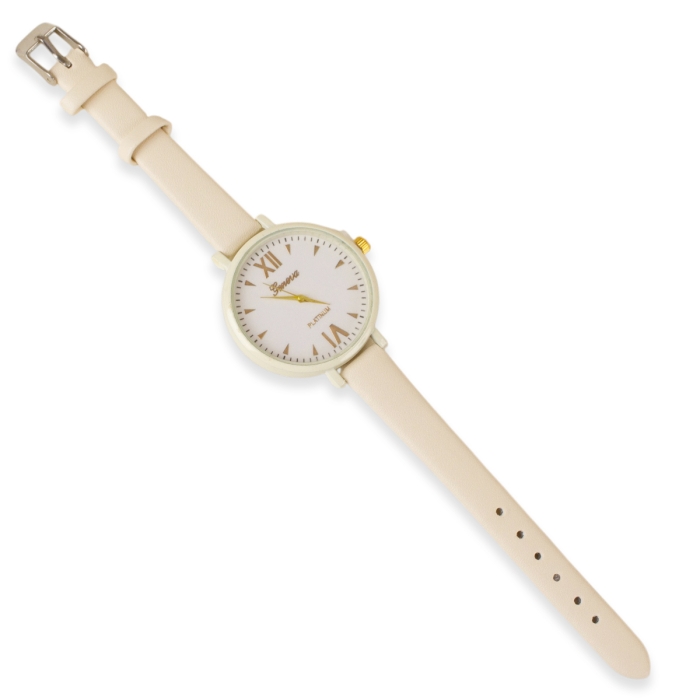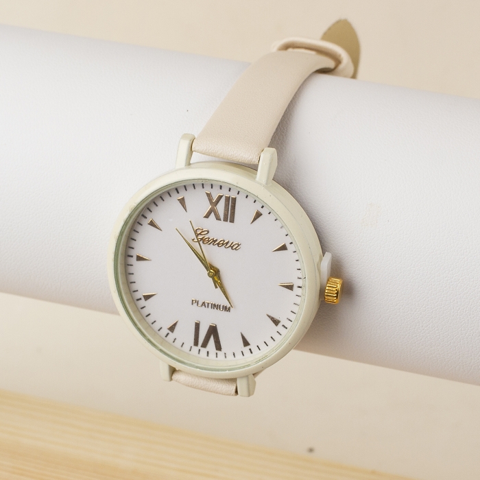 Годинники Жіночі зі Сплаву, Кварц, Ремінець Кожзам, Застібка з Нерж Сталі, Бежеві, 38х7х220мм, (УТ100016589)