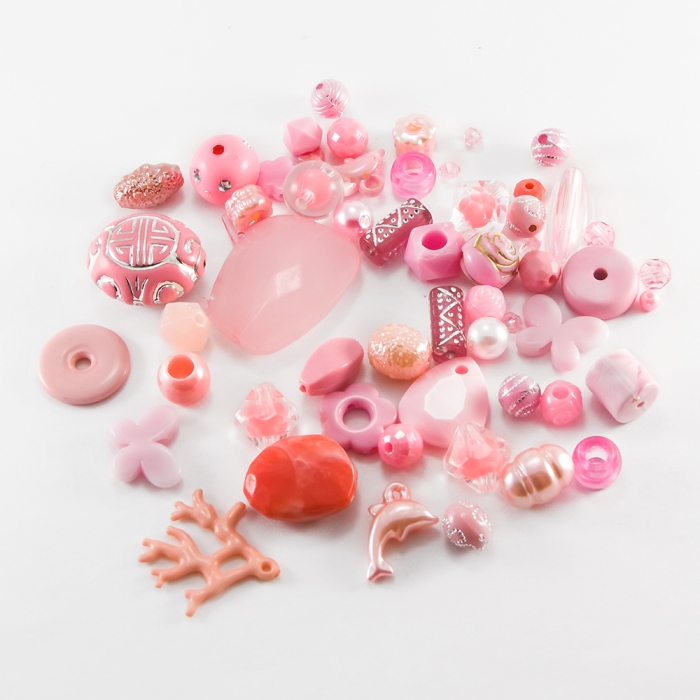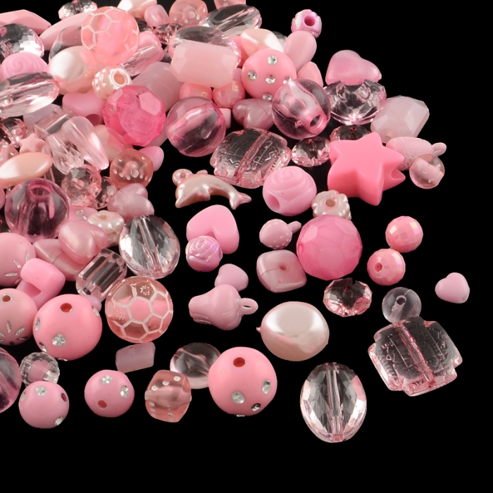 Намистини Акрил "Бомбей" Змішані Форми, Рожевий, 5.5-28x6-20x3-11мм, Отвір 1-5мм, (УТ100017976)