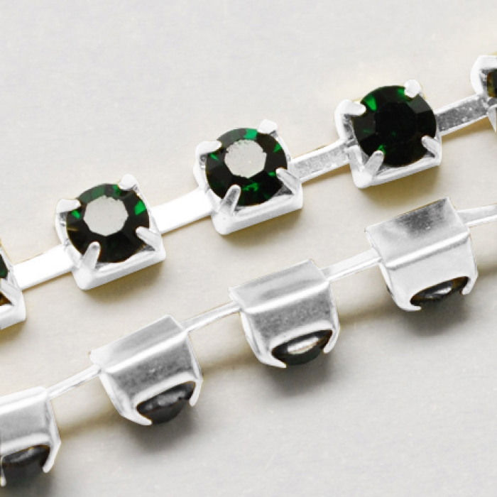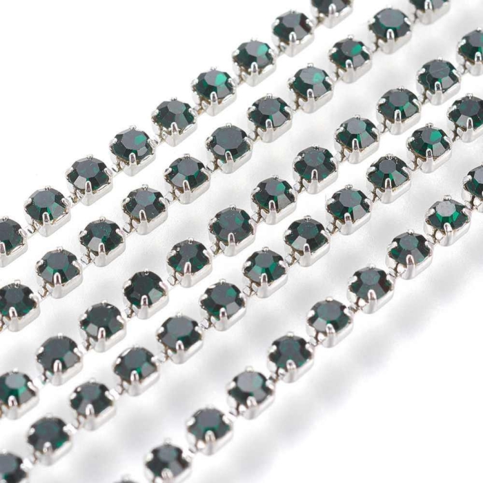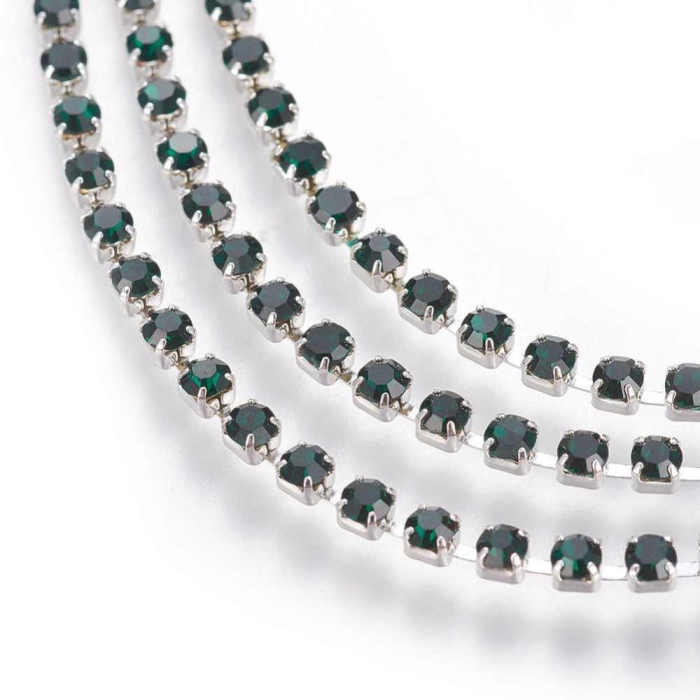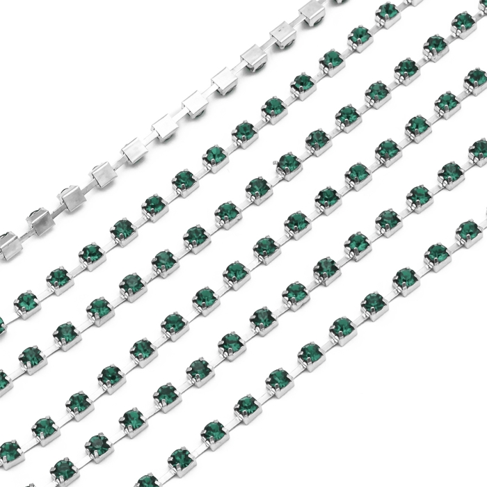 Стразовий Ланцюг Декоративний, Клас А, Срібло/Блакитний Циркон, 2мм, близько 360шт/1.1м, (УТ0029097)