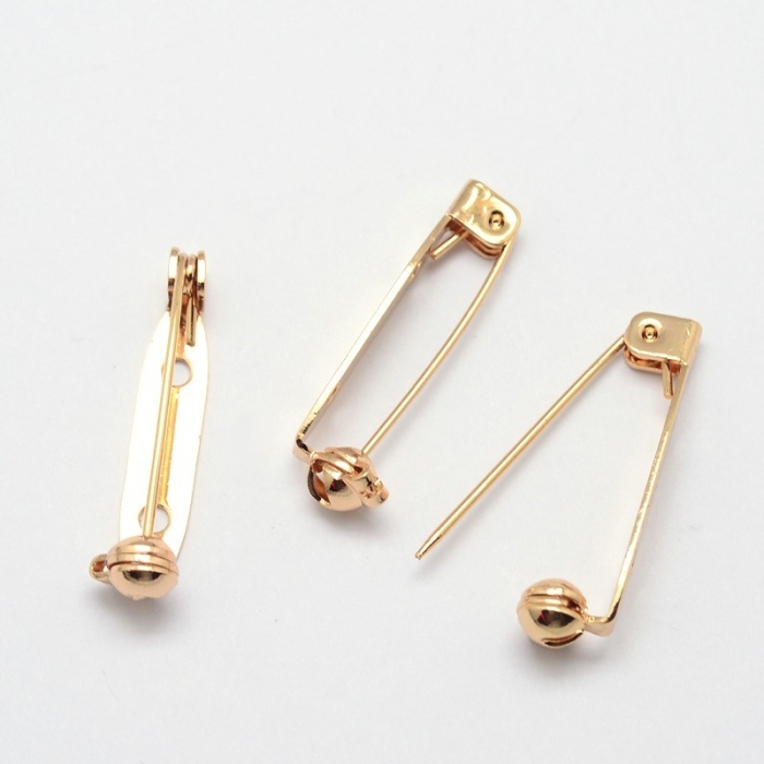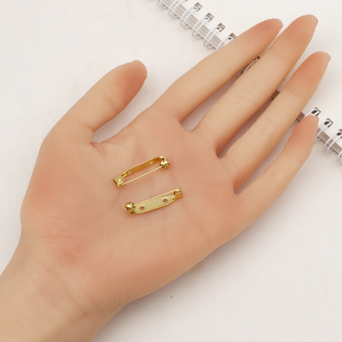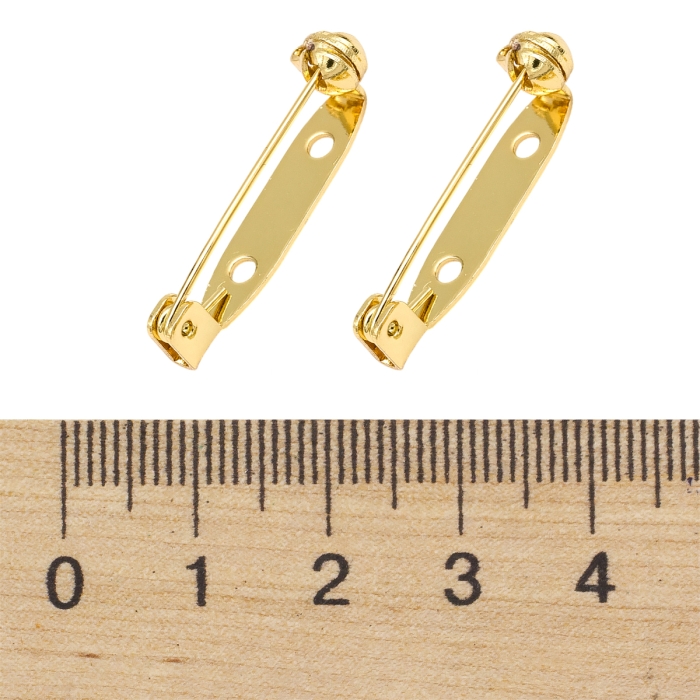 Основа під Брош Латунь, Булавка, з 2-ма Отворами, Клас ААА, Покриття Золото 18К, 28х5х6мм, Отвір 1.5мм, Пін 1мм, (УТ100027992)