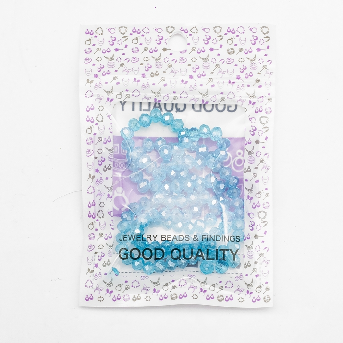 Намистини Гальваніка Скло, Гранені, Рондель, Колір: Небесно-синій, 4х3мм, Отвір 0.4мм, близько 110шт/39см/нитка, (УТ100028750)