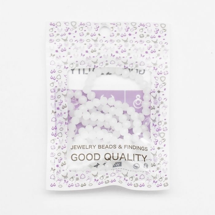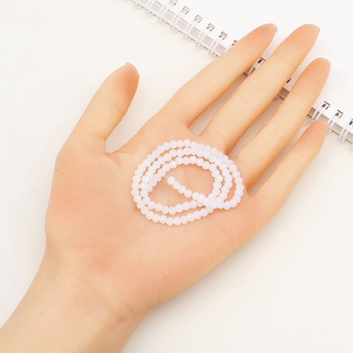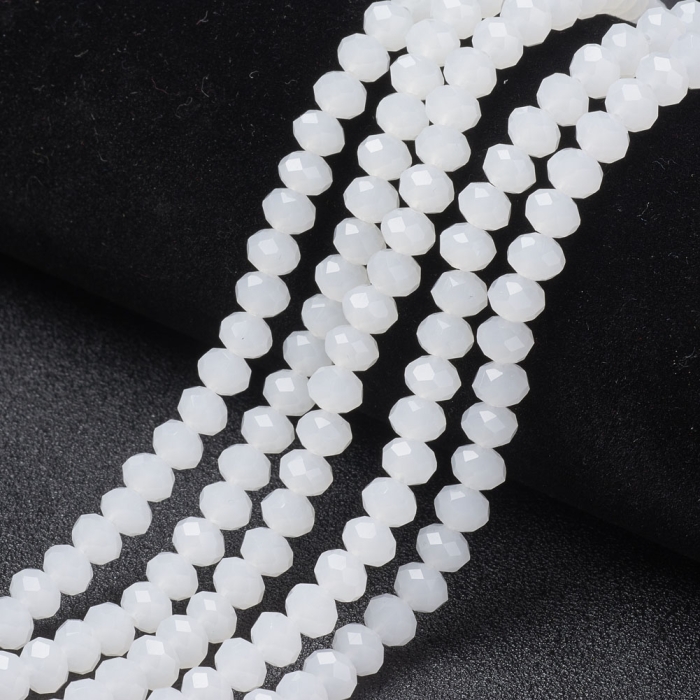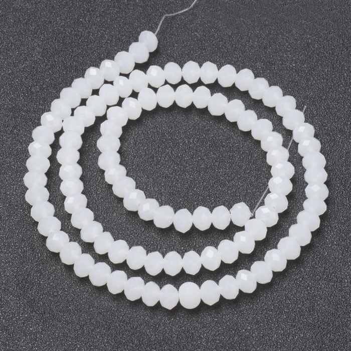 Намистини Скляні Імітація Нефриту, Грані, Рондель, Колір: Білий, 4х3мм, Отвір 0.4мм, близько 124шт/40см/нитка, (УТ100028765)