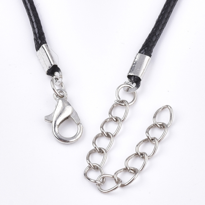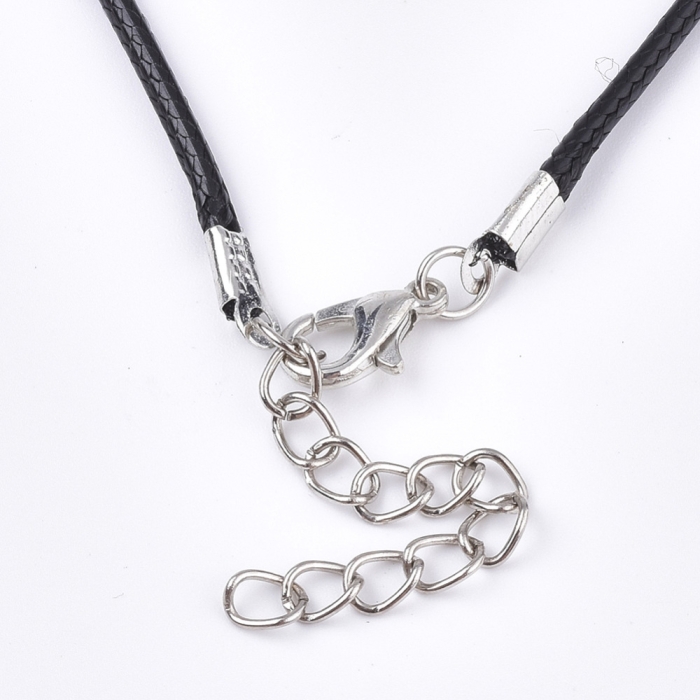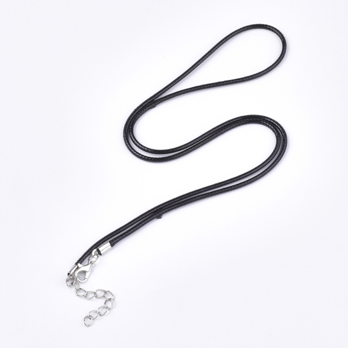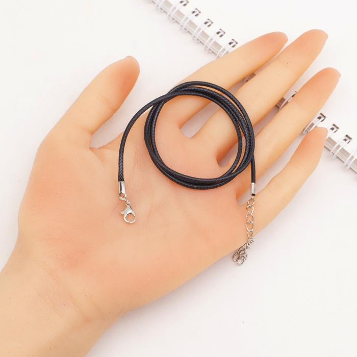 Основа для Намиста, Шнур Вощений Бавовняний із Застібкою та Ланцюжком, Чорна, 61см/2мм, (УТ100029344)