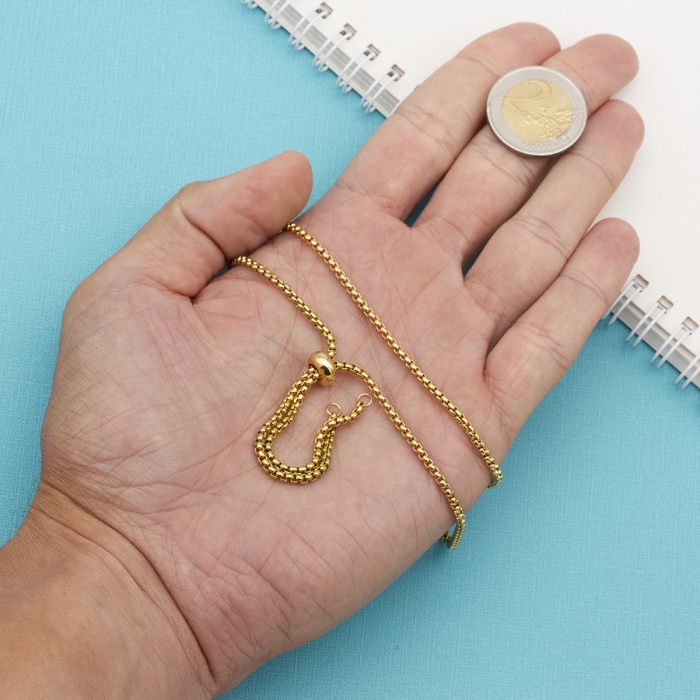 Намисто-Слайдер Ланцюжок Снейк, Нержавіюча Сталь, Застібка Бусіна Фіксатор, Золото, 75см, Ширина 2.5мм, (УТ100029457)