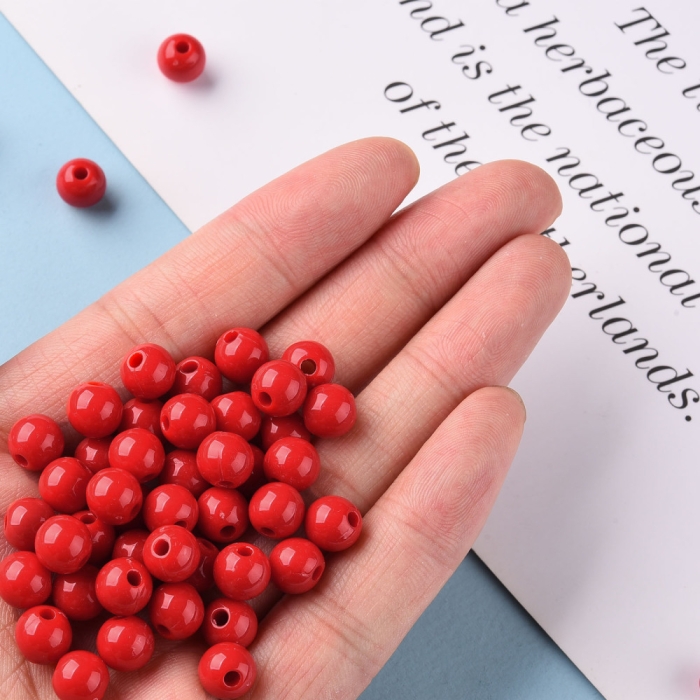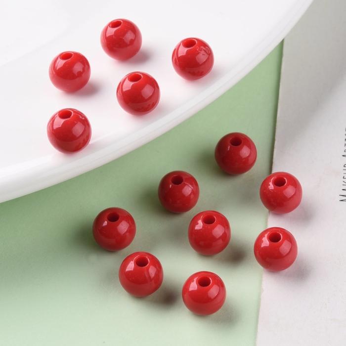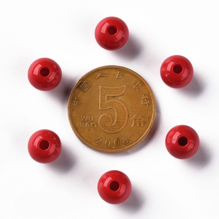 Намистини Акрилові Круглі, Цегляний, 8х7мм, Отвір: 2мм, близько 160шт/50г, (УТ100029565)