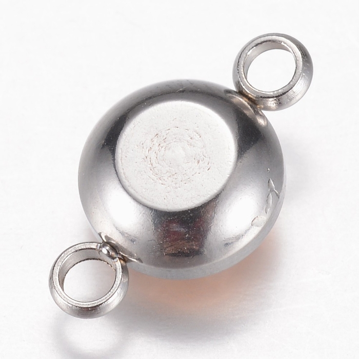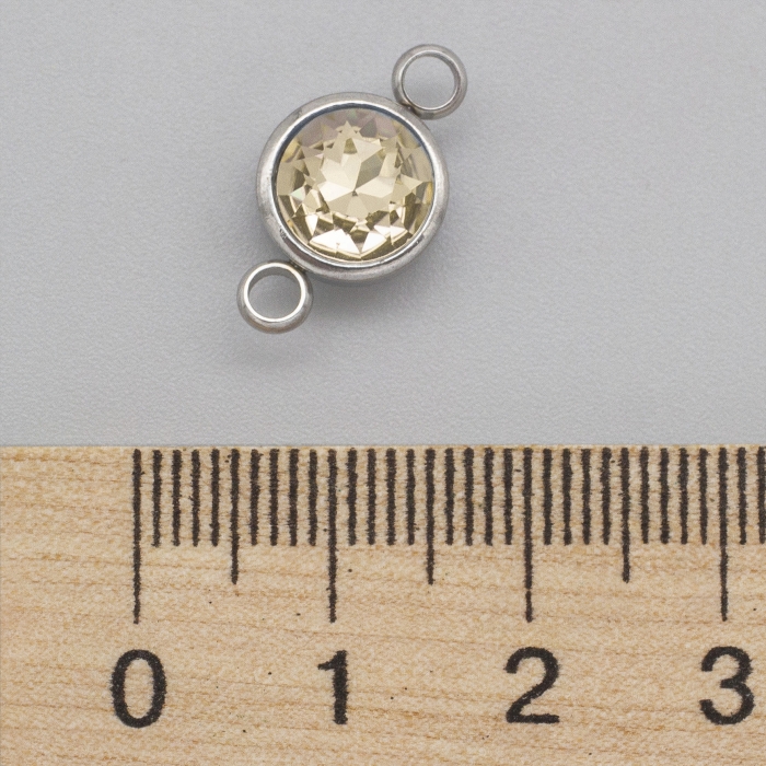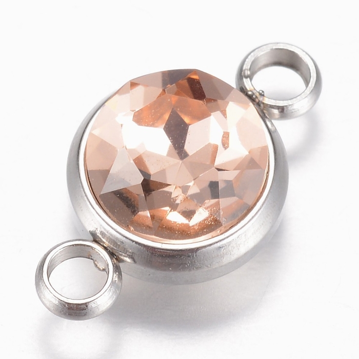Конектор Нержавіюча Сталь і грановане Скло, Плоский Круглий, 2 отвори, Колір: Світло-персиковий, Розмір 17.5х10х6.5мм, Отвір 2.5мм, (УТ100030799)
