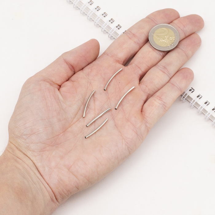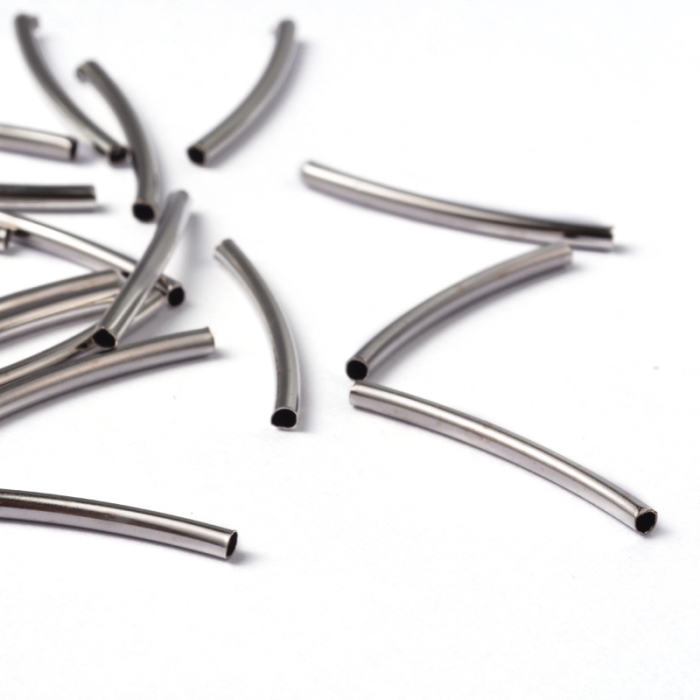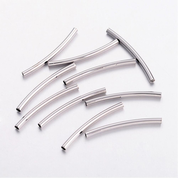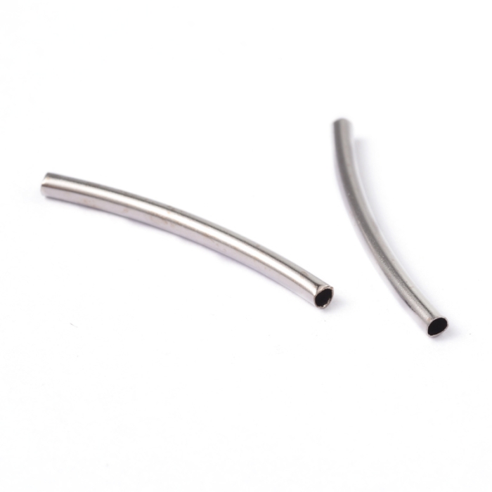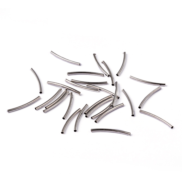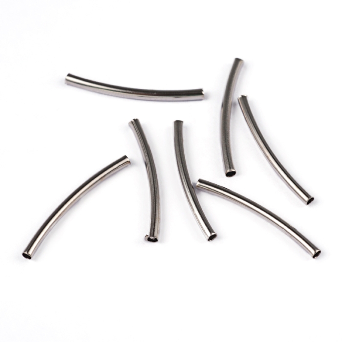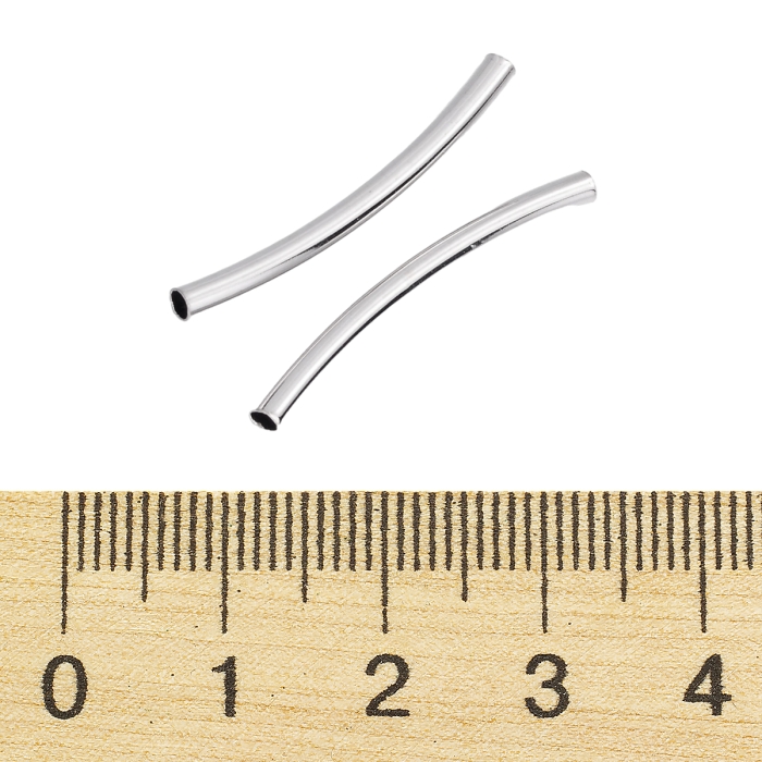Намистини Трубочки, Латунь, Вигнуті, Колір: Платина, 25х2мм, Отвір 1мм, (УТ100031102)