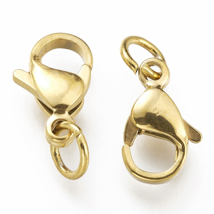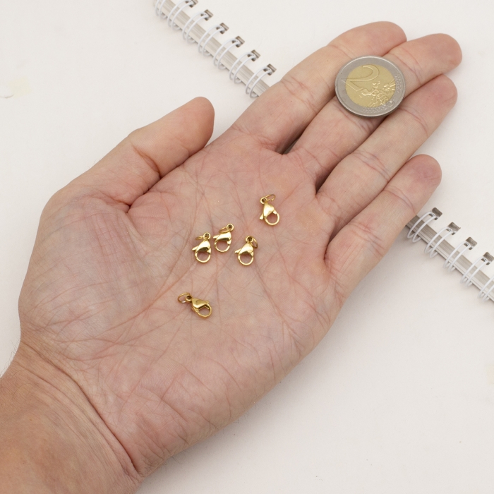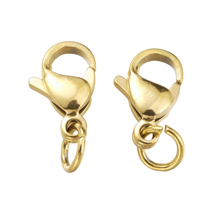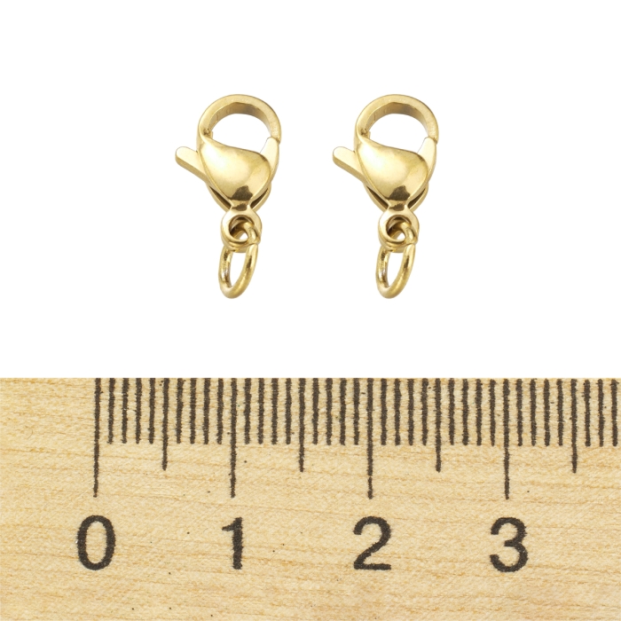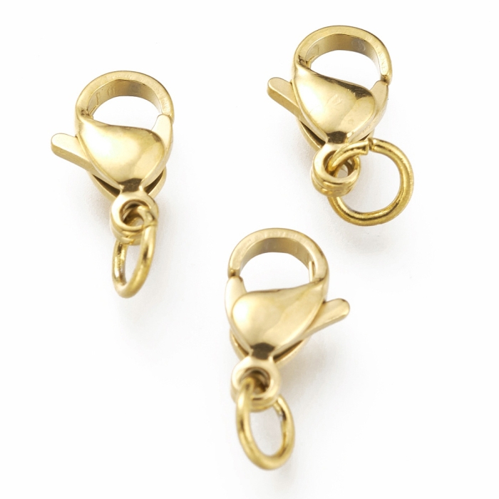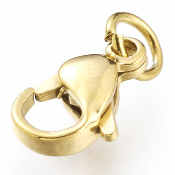 Застібка Карабін-Лобстер зі Сполучним Кільцем, Нержавіюча Сталь, Золото, 11х7х3мм, Отвір 3мм, 10шт/упак, (УТ100031332)